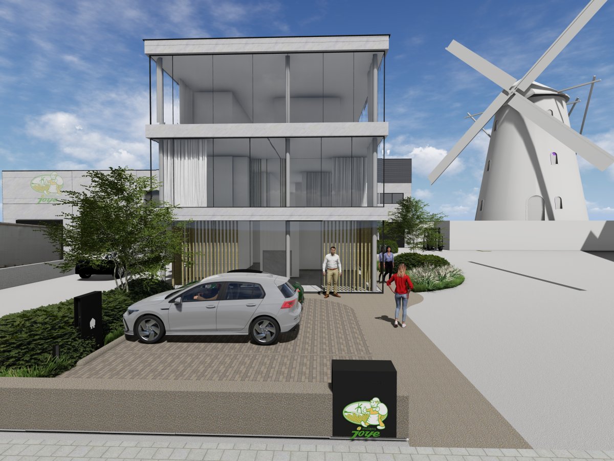 Le nouveau bâtiment comptera trois étages et Molens Joye espère le mettre en service en 2026. Au rez-de-chaussée, vous trouverez bientôt le tout nouveau magasin et notre laboratoire, ainsi qu'une cantine et des sanitaires pour le personnel, mais aussi des douches pour les camionneurs internationaux. Le fait que ce magasin soit situé à l'avant du site est une amélioration considérable, car les visiteurs n'auront plus à entrer sur notre site. Les étages seront aménagés en bureaux et nous prévoyons également deux quais de chargement afin de pouvoir charger les camions de manière plus sûre et plus efficace. De plus, le toit du bâtiment industriel situé derrière le nouveau bâtiment sera également rénové, de sorte que les deux bâtiments formeront bientôt un ensemble visuel harmonieux. Nous prévoyons également d'installer des panneaux solaires sur tous les toits. »